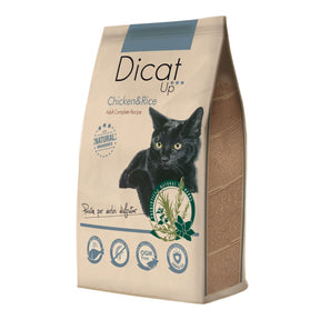 Dicat Up Adult Complet Pollo y Arroz es un pienso completo y equilibrado para gatos adultos de todas las razas y etapas de vida. Con alto contenido en proteína animal, arroz, y extractos naturales, esta receta promueve la digestión, el bienestar urinario y la salud articular. Incluye ingredientes naturales como arándanos, yuca, romero y alcachofa, además de L-Carnitina y condroprotectores.