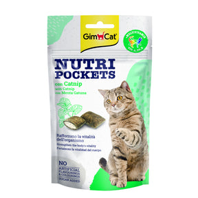 GimCat Nutri Pockets Catnip Biotina son deliciosos snacks crujientes con relleno de catnip y un complejo de 12 vitaminas esenciales para reforzar el sistema inmunológico de los gatos. Gracias a su contenido de menta gatuna, estimulan de forma natural y positiva el bienestar felino. Con menos de 2 kcal por snack, son ideales para premiar entre comidas sin afectar al peso de tu mascota.