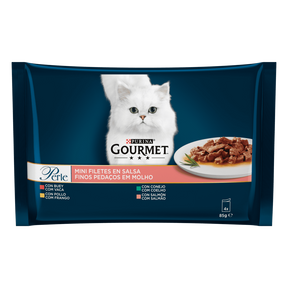 GOURMET Perle presenta una deliciosa selección de finas láminas cocinadas en una salsa sabrosa, elaboradas con carnes y pescados de alta calidad. Estas cuatro recetas delicadas están pensadas para conquistar hasta a los gatos más exigentes. Una experiencia diaria irresistible, completa y equilibrada.