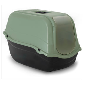 Es una bandeja sanitaria cerrada para gatos, diseñada para ofrecer privacidad y limpieza. Su estructura con tapa y puerta abatible ayuda a contener los olores y evita que la arena se esparza. Fabricada en plástico reciclado, forma parte de la línea ecológica de Nayeco, pensada para reducir el impacto medioambiental sin renunciar a la funcionalidad.