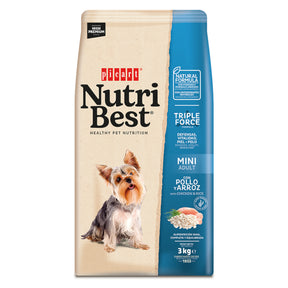 Nutribest Adult Mini es un pienso completo y equilibrado desarrollado para perros adultos de razas pequeñas (mayores de 12 meses). Elaborado con pollo y arroz como ingredientes principales, contiene ingredientes naturales y algas marinas para una piel sana y un pelaje brillante. Sin conservantes artificiales, garantiza una digestión óptima y una palatabilidad excelente.