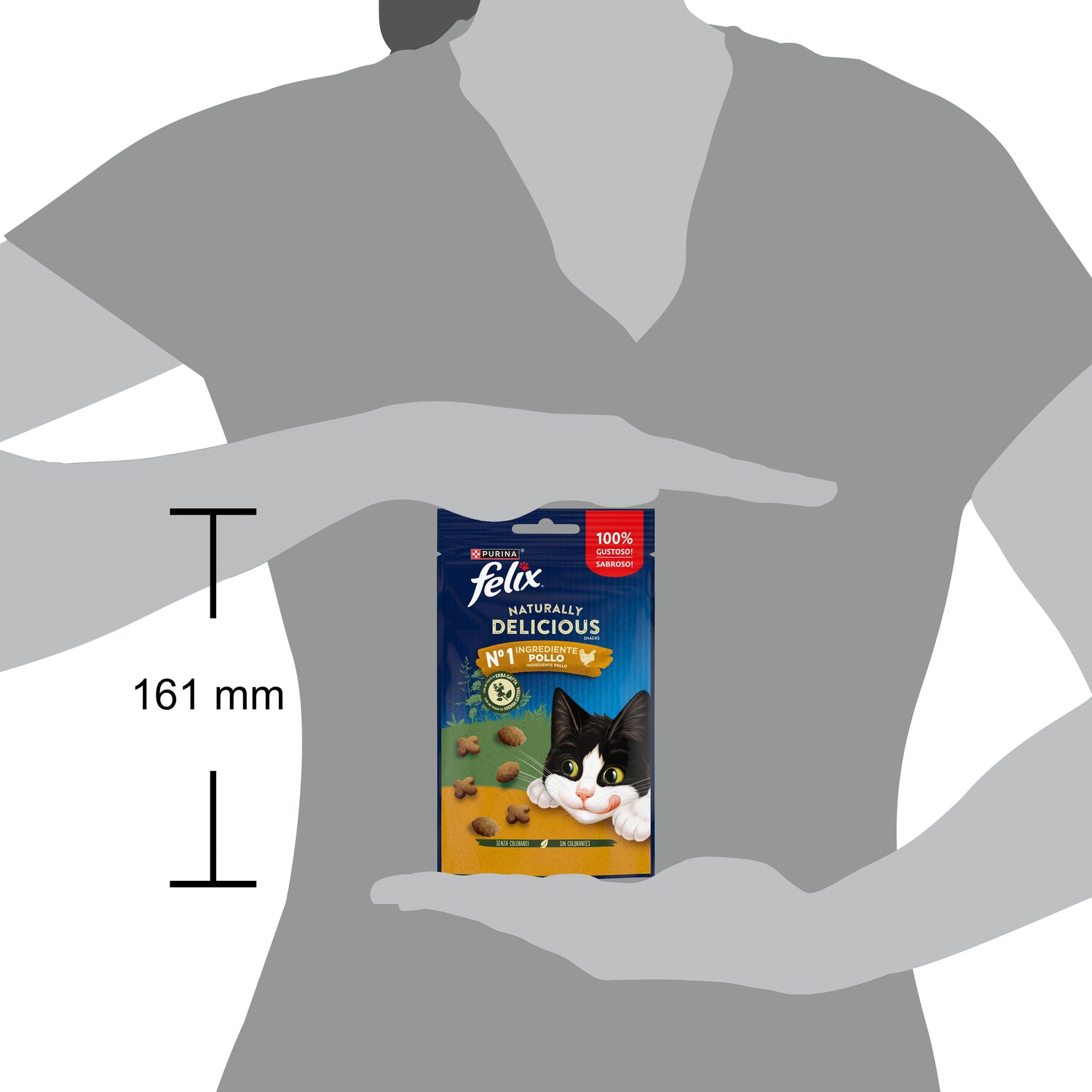 Es un snack para gatos adultos. Ofrece pollo como ingrediente nº 1, está elaborado sin colorantes y aporta proteínas, vitaminas y ácidos grasos Omega 6 con ingredientes de alta calidad.