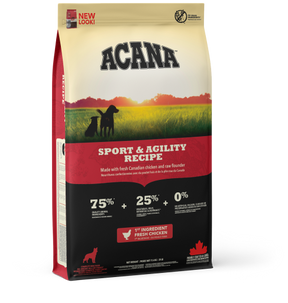 Acana Sport & Agility es un pienso premium sin cereales diseñado para perros con niveles de actividad física elevados. Con un 75 % de ingredientes animales como pollo, pavo, huevos frescos y pescado, proporciona una combinación rica en proteínas y grasas para mantener la resistencia, la masa muscular y el rendimiento diario de perros activos, deportistas o de trabajo.