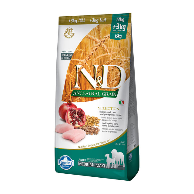 Farmina N&D Ancestral Selection Dog Pollo & Granada Adult Medium Maxi - 12 kg + 3 kg está agotado y se enviará tan pronto como vuelva a estar disponible.