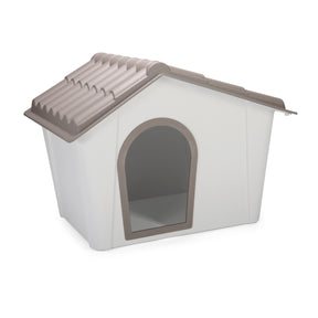 Caseta para mascotas con ventana de ventilación ajustable, suelo elevado con pies antideslizantes y sistema drenante. Techo desmontable para limpieza rápida y borde reforzado anti mordiscos. ¡Refugio cómodo y seguro para tu mascota!