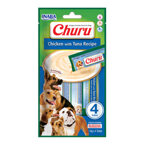 Churu Dog Receta de Pollo con Atún es un snack cremoso y delicioso diseñado como recompensa para perros. Elaborado con pollo y atún, es ideal para entrenamientos o momentos especiales. Su textura suave y bajo contenido calórico lo hacen apto para perros de todas las edades y tamaños.