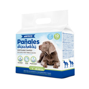 Los pañales desechables Nayeco están diseñados específicamente para perros macho, ofreciendo una solución higiénica y cómoda en casos de incontinencia, convalecencia postoperatoria o durante viajes largos. Gracias a su alta capacidad de absorción y su indicador de humedad, garantizan la sequedad y el bienestar de tu mascota.