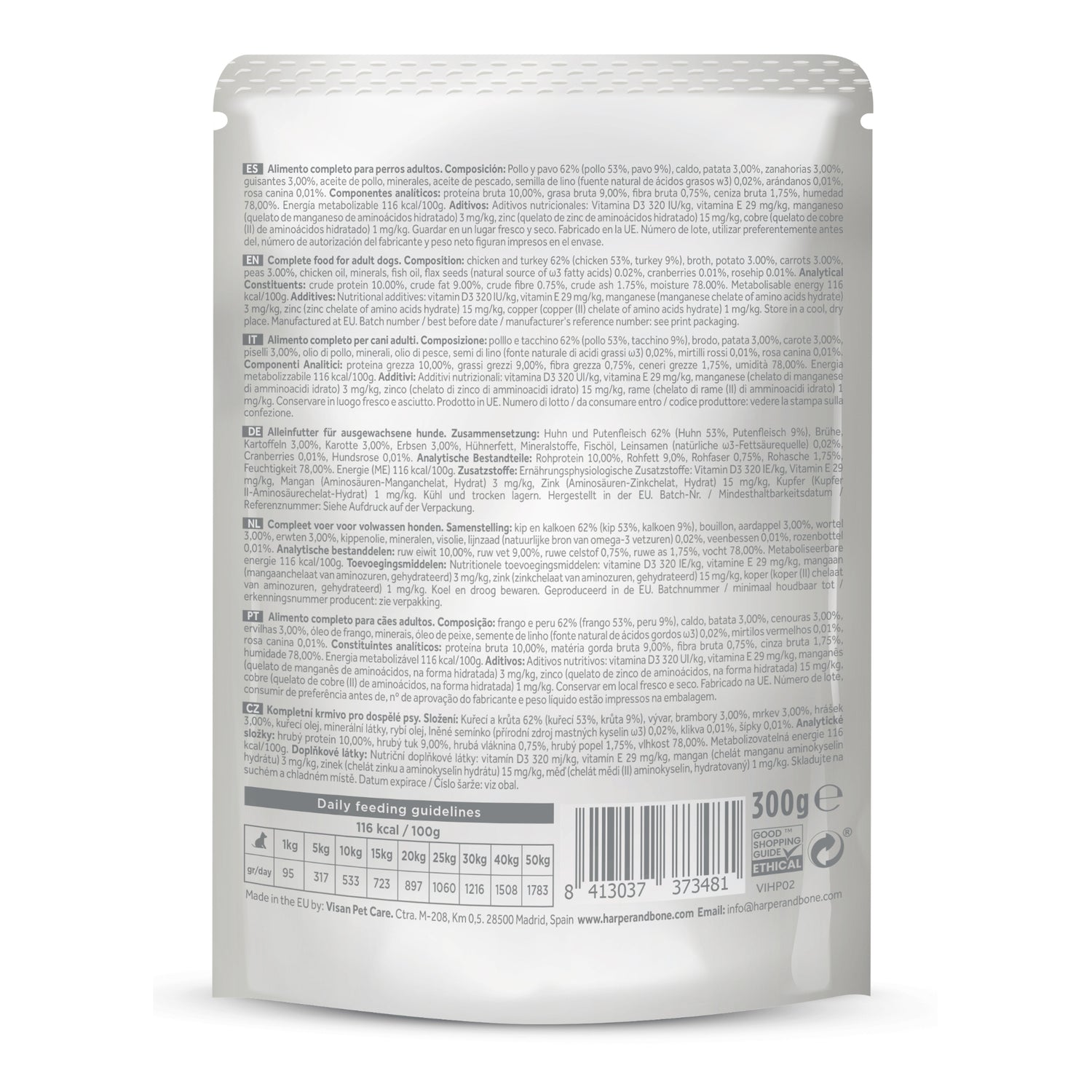 Es un alimento húmedo para perros adultos. Ofrece una receta sin cereales (Grain Free) con pollo, pavo y pato como fuentes de proteína animal de alta calidad, ideal para una alimentación sabrosa, nutritiva y fácil de digerir.