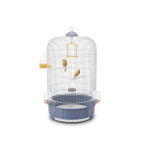Clásica jaula redonda para canarios con todos los accesorios esenciales: perchas, columpio, comederos y bebederos. Dos puertas grandes y bandeja extraíble para fácil acceso y limpieza. Gancho superior para colgarla del techo. Fabricada en Italia con materiales seguros.